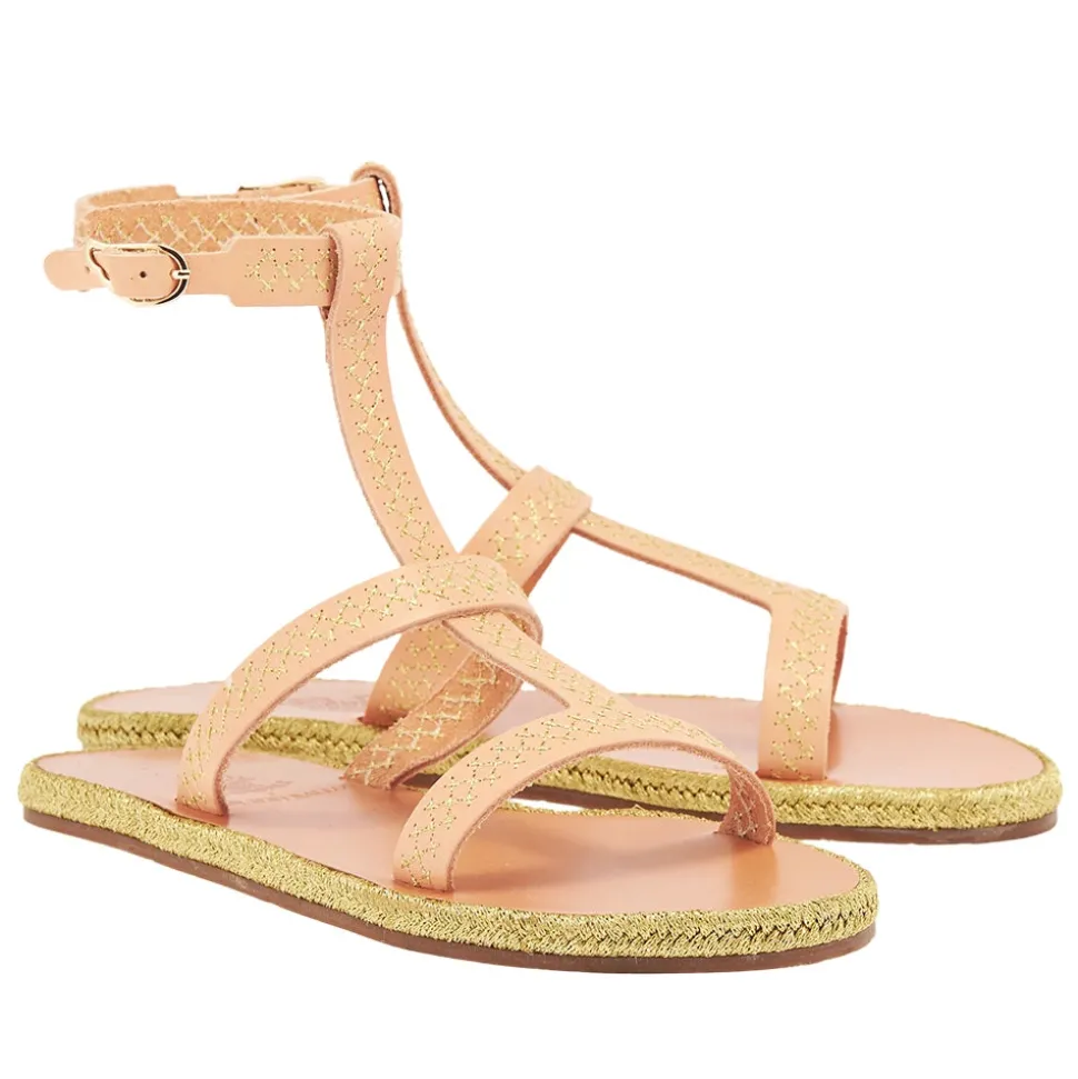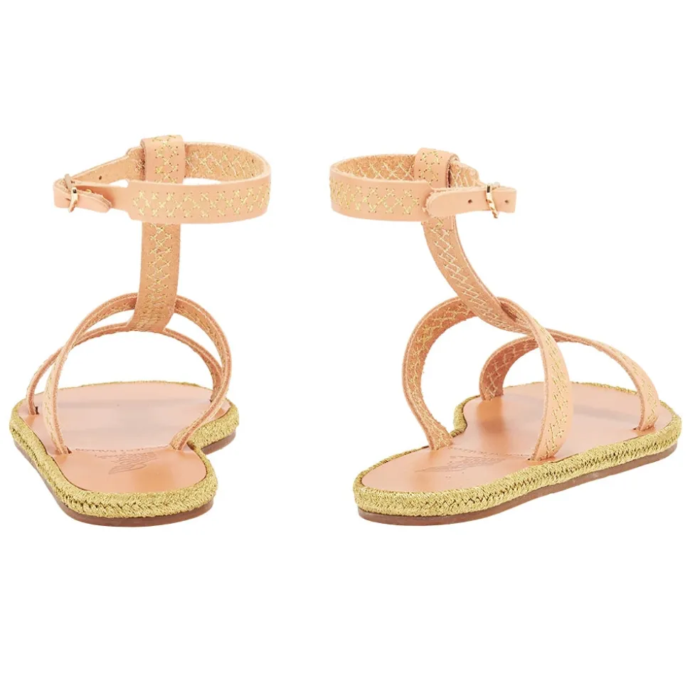 Created in close collaboration with sustainably-focused resort wear brand Ancient Kallos, this limited-edition espadrille sandal is adorned with traditional golden cord – a signature element of Ancient Kallos. The cross-stitch embroidery plays across the natural tan leather in whichever shade you choose – and ties in with the slimline espadrille rope sole, also in glimmering gold. Note the Ancient Greek Sandals signature winged buckle at the ankle. This is an elegant sandal that prioritizes detail – pair with simple summer separates or pieces that highlight traditional craftsmanship.