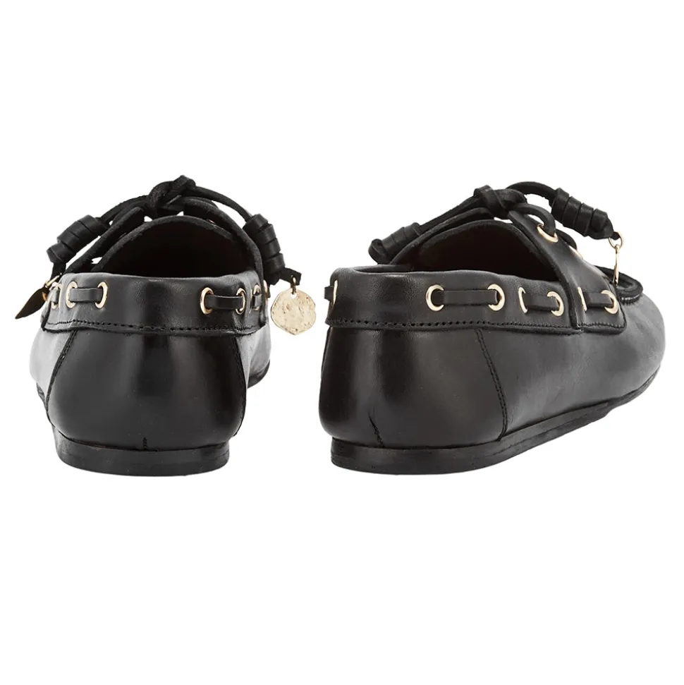 Named after the Greek word for boat, Pliaria takes the traditional preppy style and gives it a laid-back – but highly desirable – feel. Handmade in Greece to a typical boat-shoe shape, the style is given a twist with distinctive leather laces rolled to form a special knot (inspired by the father of our creative director, Christina Martini), and finished with gold charms hanging from the laces. Already a must-have style, Pliaria adds insouciance to dresses or tailoring, or pairs beautifully with weekend favourites. The super-soft oiled vachetta leather is super sophisticated and available in a range of colours, plus several two-colour combinations which really draw the eye.