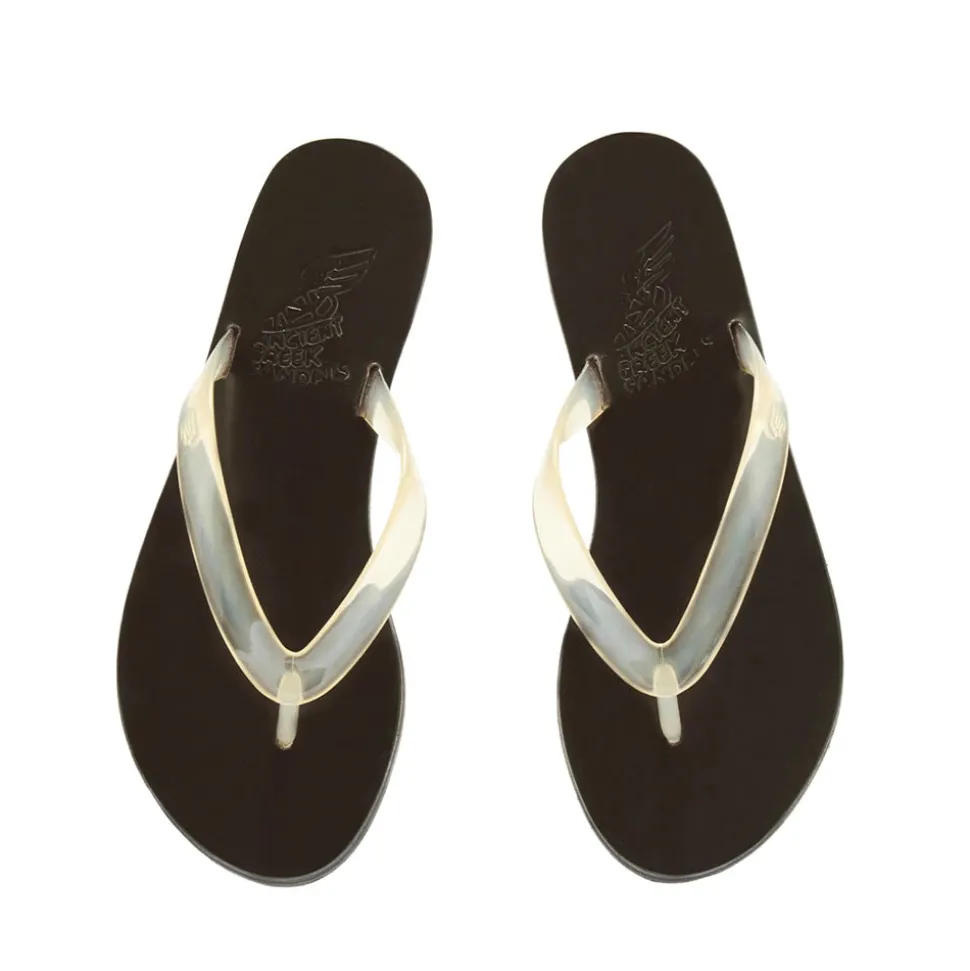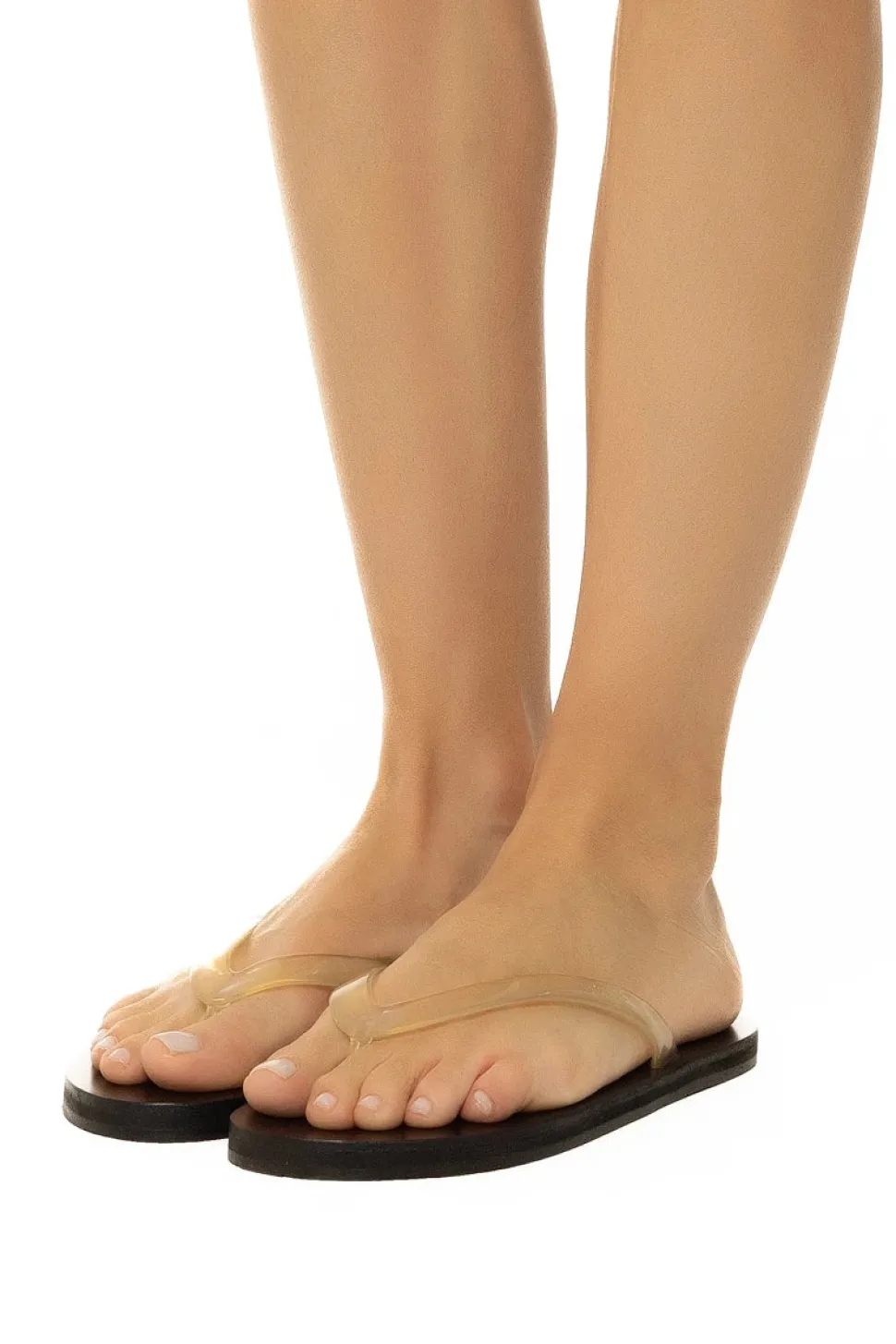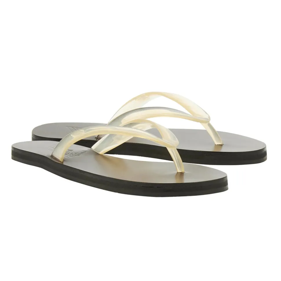 The Saionara jelly flip-flop sandal bridges the gap between beach flip-flop and city sandal, with a hand-stitched leather sole giving it structure, and a jelly thong strap that sits between the toes.