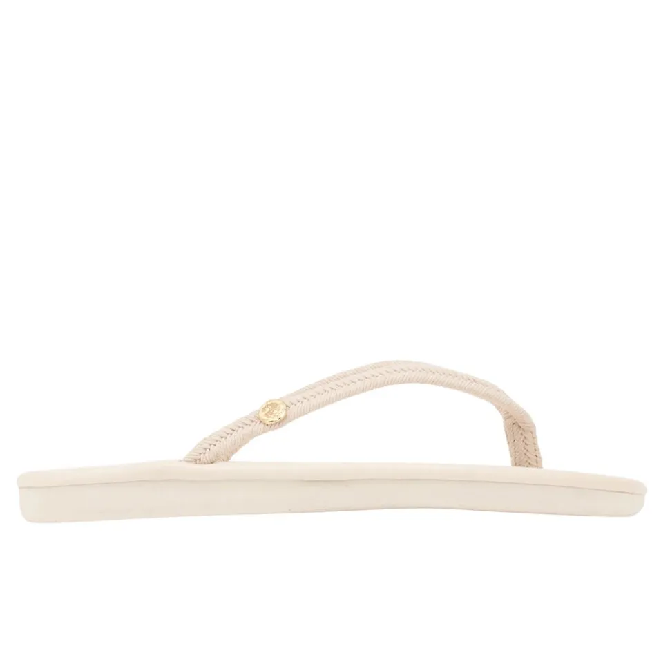 Saionara is part of our rope collection, inspired by the ropes of small boats found in Greek harbours, with uppers featuring natural cord. This is a fun and summery take on our classic flip-flop shape, available in a wide range of shades, including colourways with tonal soles for a streamlined look. All feature a decorative metal coin with our logo.