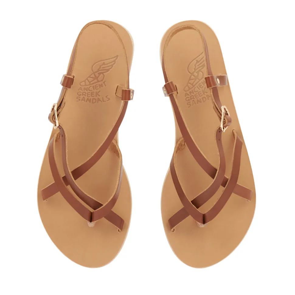 A move-on from the traditional flip-flop, this sandal has the addition of an elegant over-foot cross, fastening at the ankle with one of our signature golden wing buckles. A slim plastic sheath protects the central column for immediate comfort, while the rest of the leather upper and super soft sole are ready to wear. One of our largest colour ranges make this sandal addictive to fans, who buy just one more, year after year.