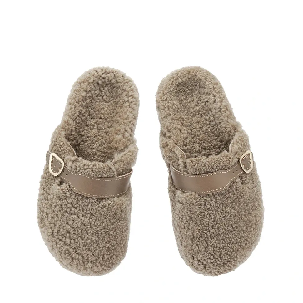 Meet Vasilitsa – robust enough to take you around town, comfortable enough to make you wonder if you really need to leave home at all. The cocooning footbed and the rounded closed toe are both crafted in sheepskin and the upper is finished with an accent strap and signature wing-shape buckle. Choose your shade from two relaxed neutrals.
